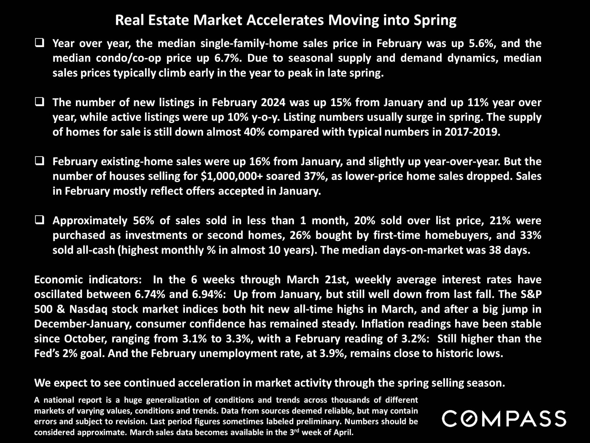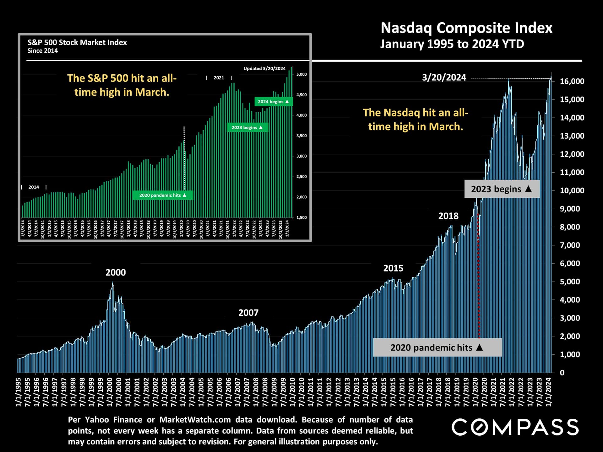 Stock markets hit new highs in March, an enormous factor - especially for more affluent households - in wealth, consumer confidence, and the ability to pay all-cash for homes.