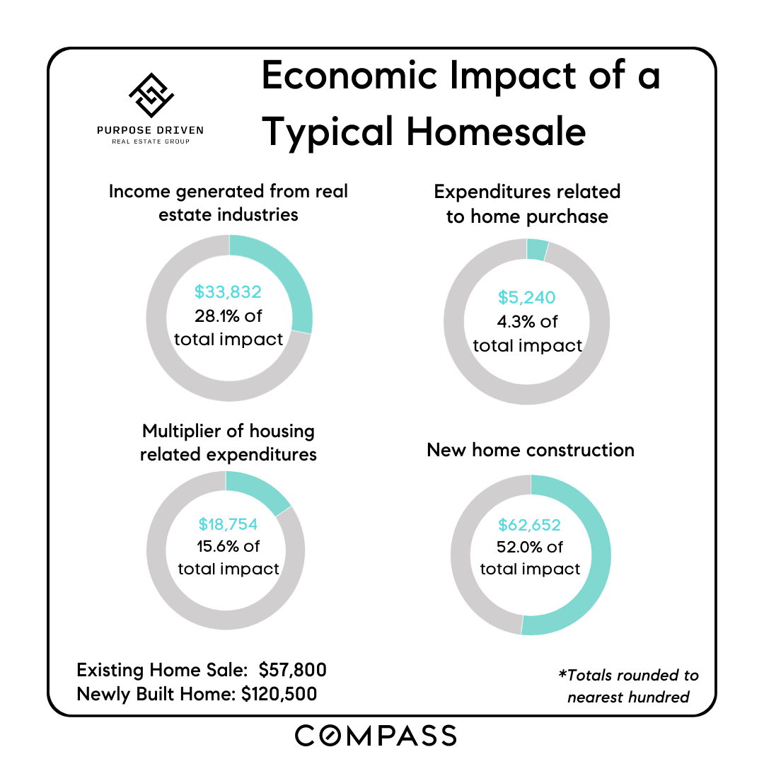 If you're considering purchasing or selling a house, it's crucial to understand that this decision holds significance not only for your personal life but also for the welfare of your community. The National Association of Realtors (NAR) publishes an annual report that highlights the economic activity generated by home sales. The accompanying chart demonstrates the profound impact: